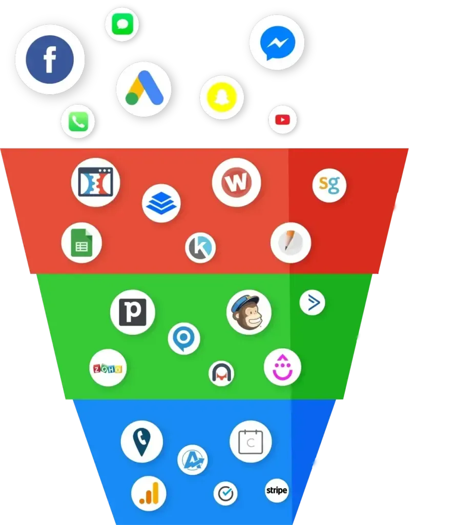 Permite crear embudos de venta, campañas automatizadas, CRM personalizados, y sistemas de mensajería por email, WhatsApp y SMS desde un solo lugar.